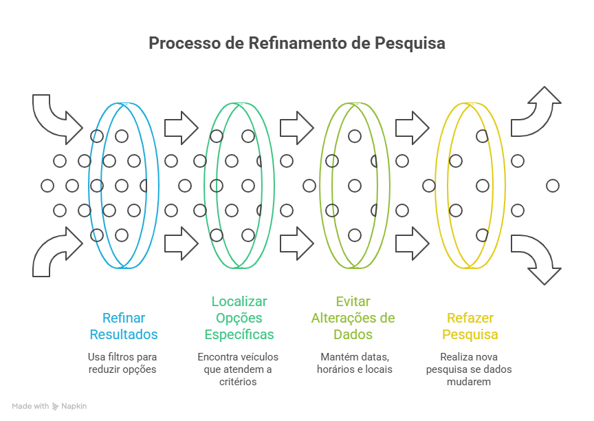 Eles ajudam a organizar e reduzir a lista de veículos disponíveis, facilitando a escolha, sem alterar os dados principais da pesquisa.