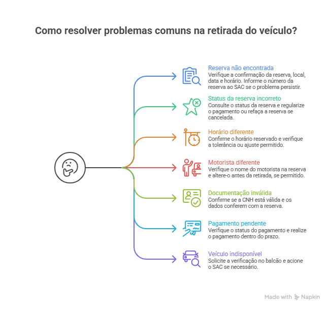 Neste artigo, você conhece os problemas mais comuns que podem ocorrer no momento da retirada do veículo e aprende como proceder para resolver cada situação de forma rápida e segura.